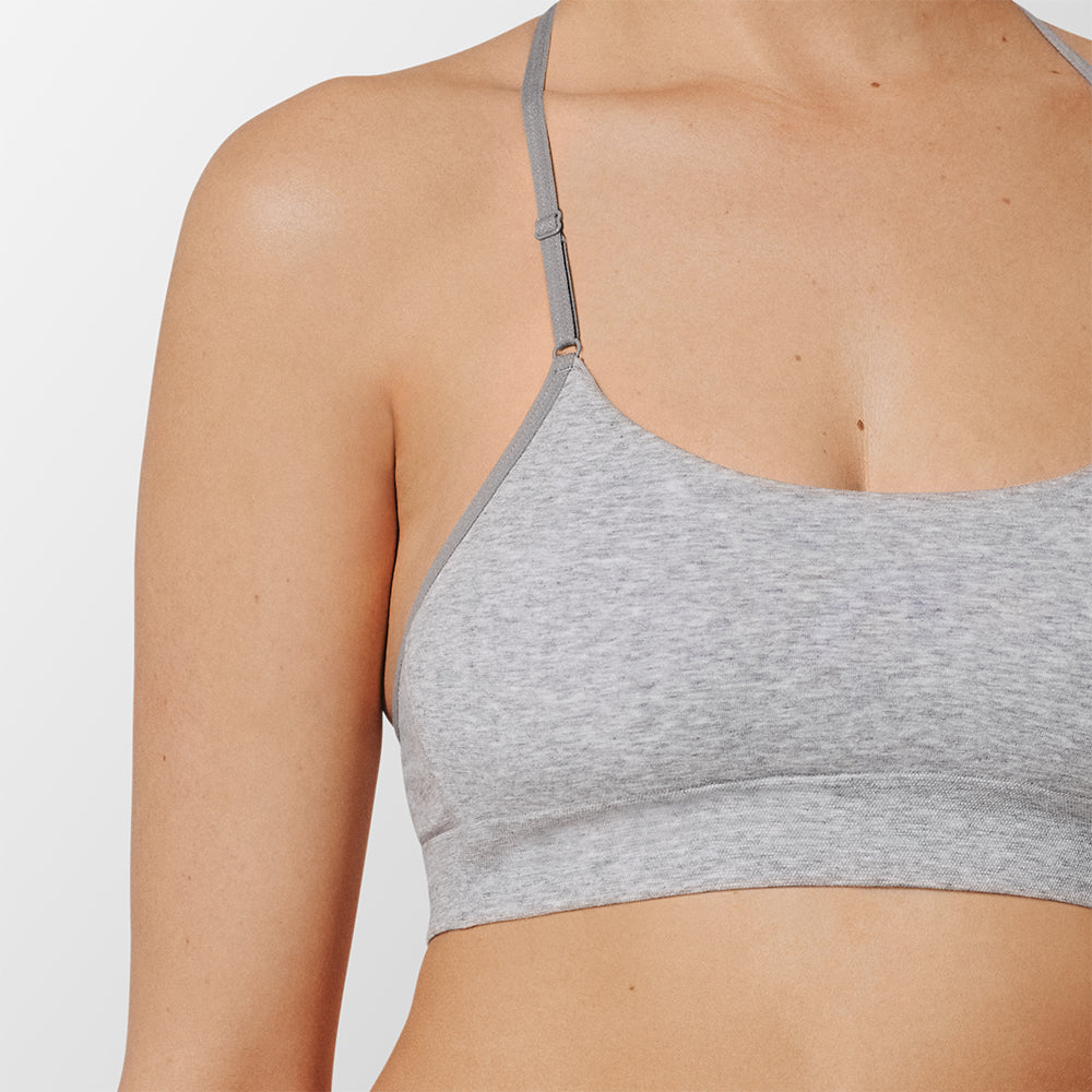 Our cotton bralette is everything you love about seamless — body-hugging, stretchy fit, easy to layer — with the added benefits of naturally soft, breathable cotton. Built-in spacer foam shapes, supports, and increases airflow, making it an ideal wicking cotton bra without underwire.